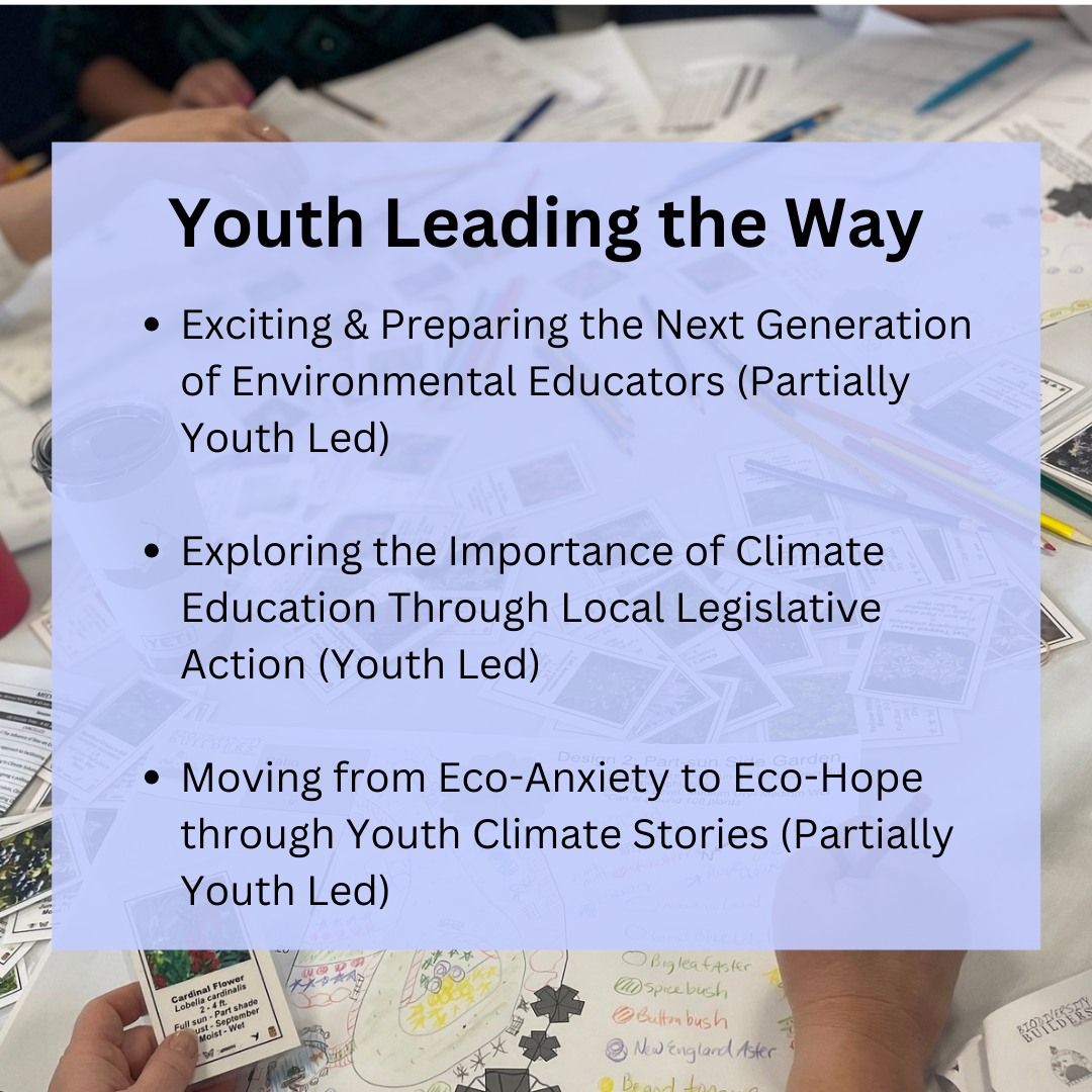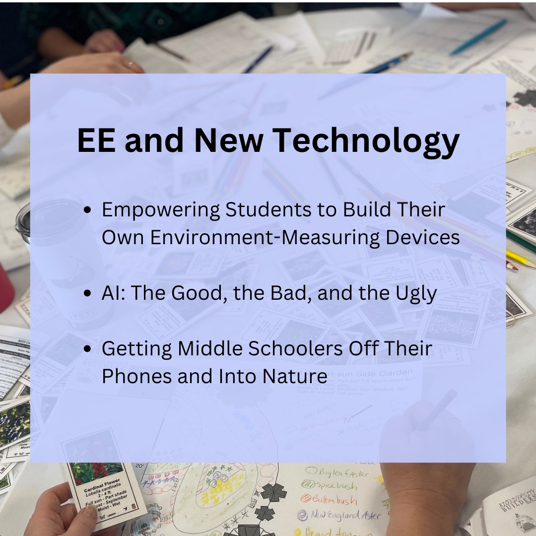 The conference brings together environmental educators throughout New England. Participants, presenters, and sponsors reflect the diversity of the environmental education profession and includes K – 12 schools, nature centers, urban environmental programs, museums, sustainability programs, farms and gardens, and many more.